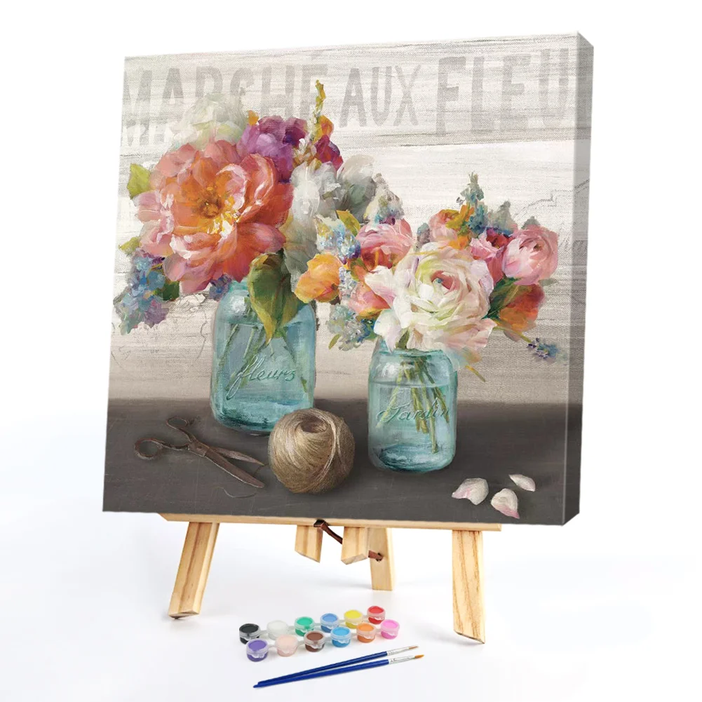 Table Flower Oil Paint By Numbers Kit DIY Acrylic Painting on Canvas Frameless Drawing Picture for Adults Home Decoration Gift Wall Art Picture Craft