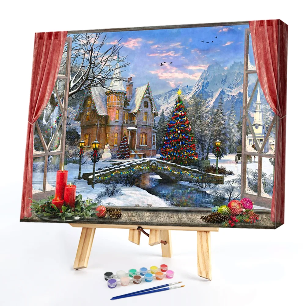 Christmas Snow Scene-Paint by Numbers Acrylic Painting 50*40cm