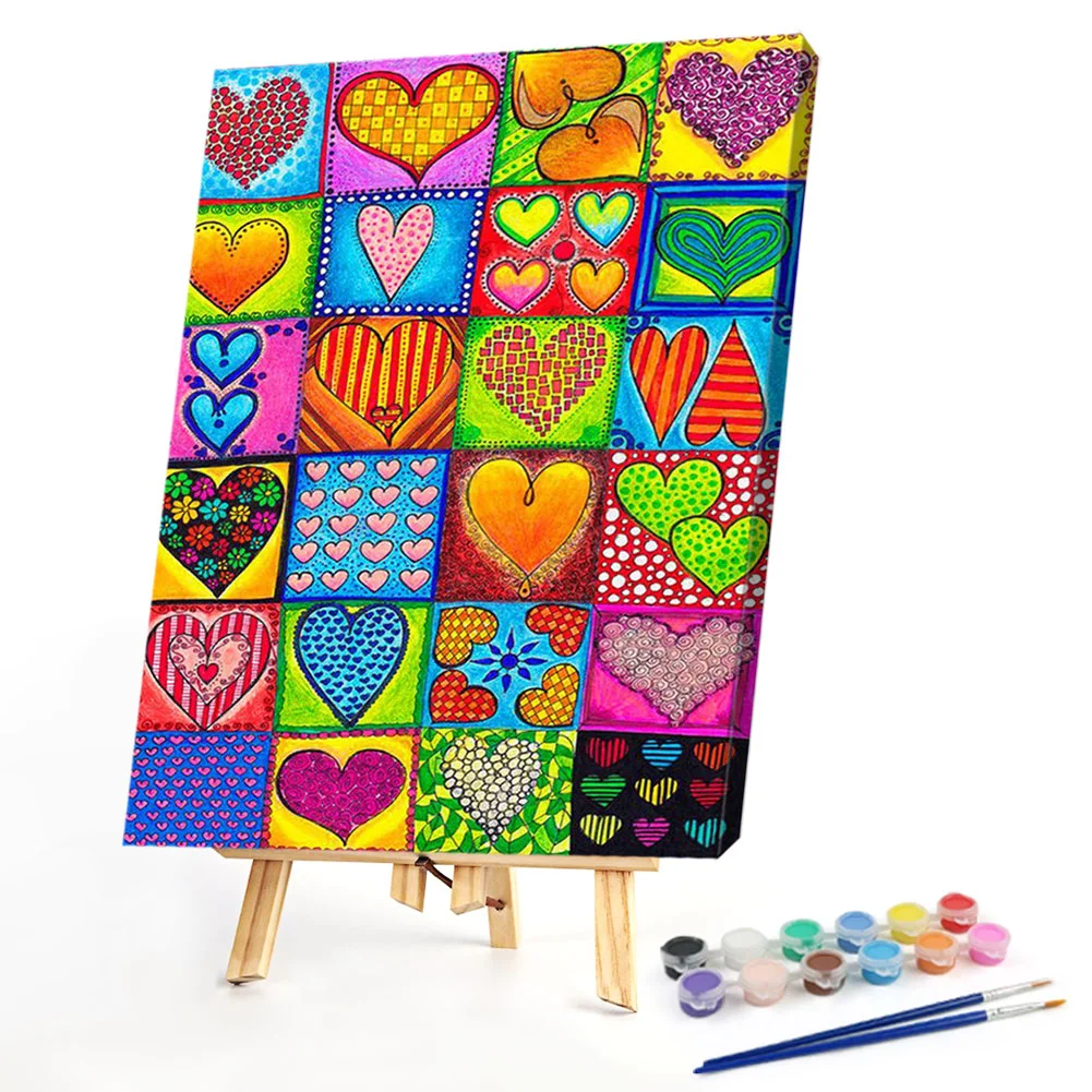 Abstract Hearts Oil Paint By Numbers Kits Canvas Picture Wall Art DIY Craft Coloring Drawing Home Decoration Gift for Adults Children No Frame