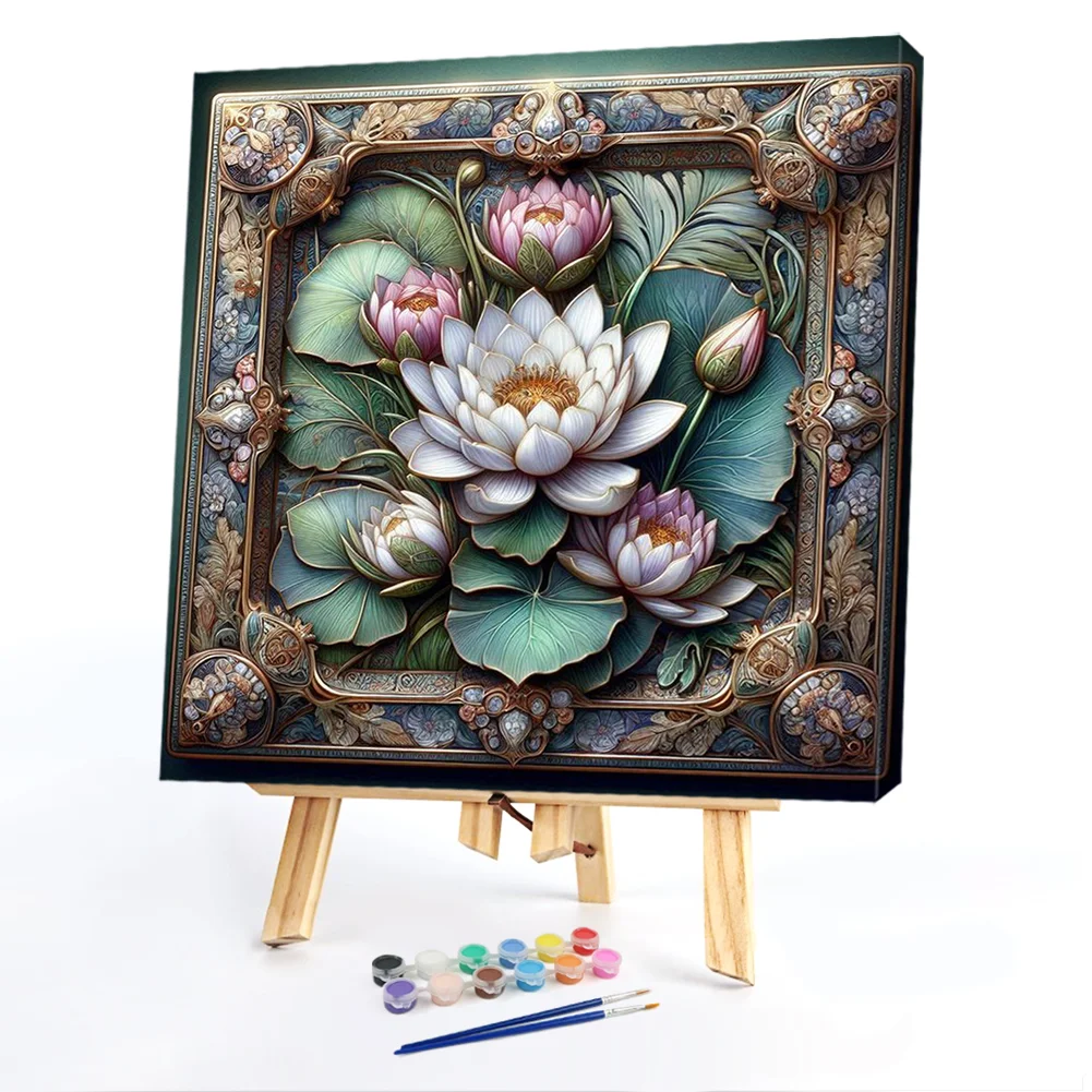 Embossed style-Lotus-Paint by Numbers Acrylic Painting 40*40cm