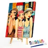 Three Young Women Oil Paint By Numbers Kit DIY Acrylic Painting on Canvas Frameless Drawing Picture for Adults Home Decoration Gift Wall Art Picture Craft